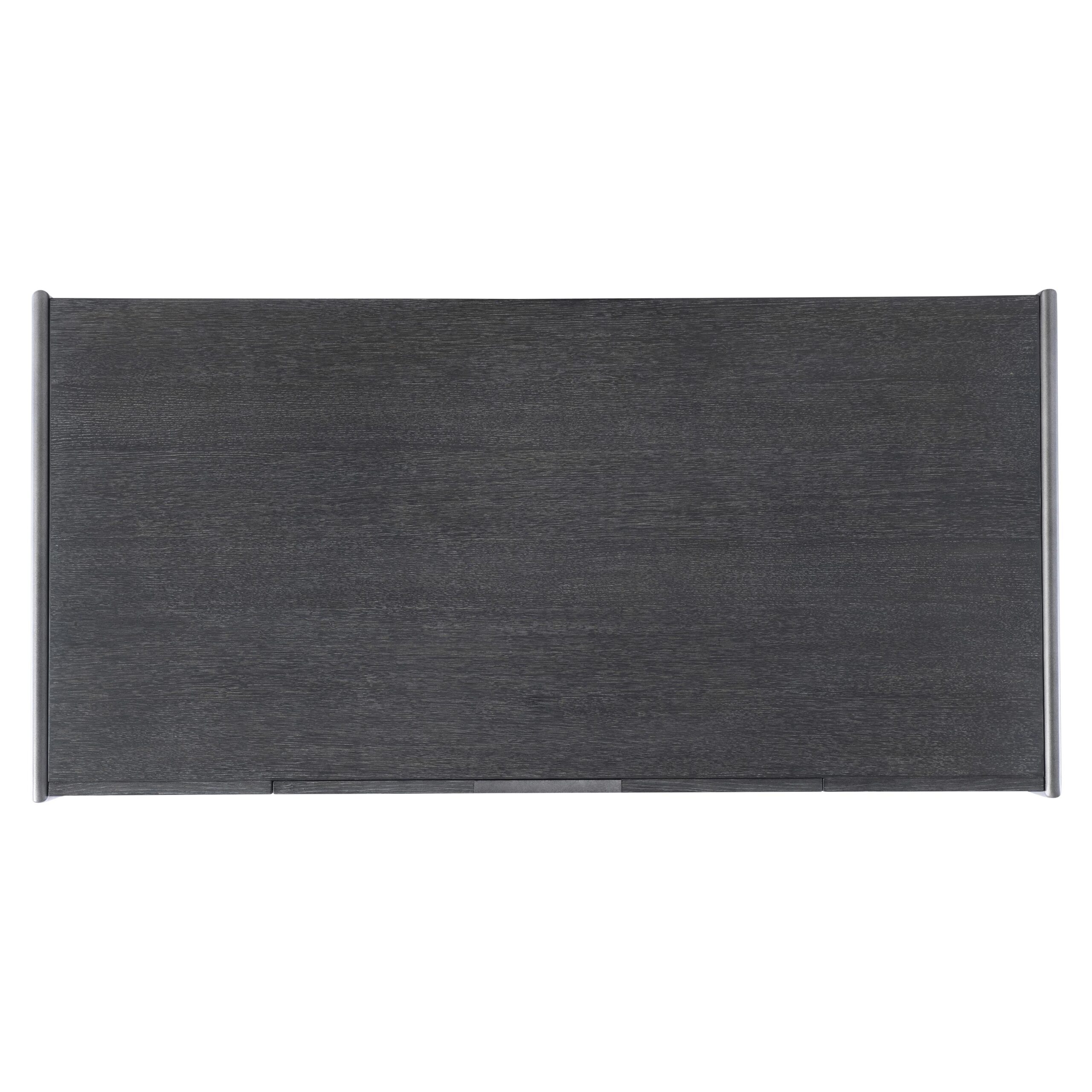 - Wire-brushed oak in Kohl finish with applied textured steel frame in Atra finish