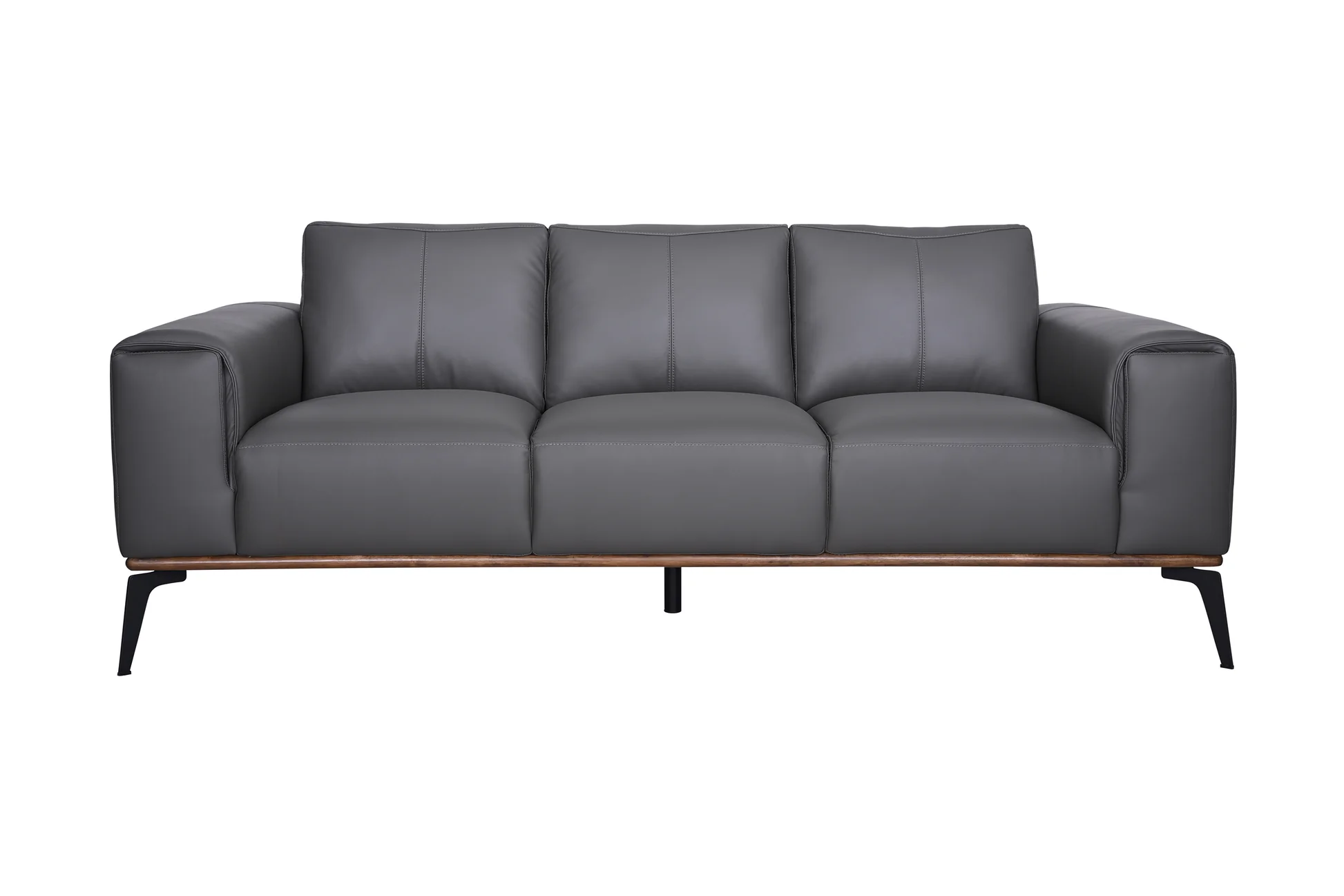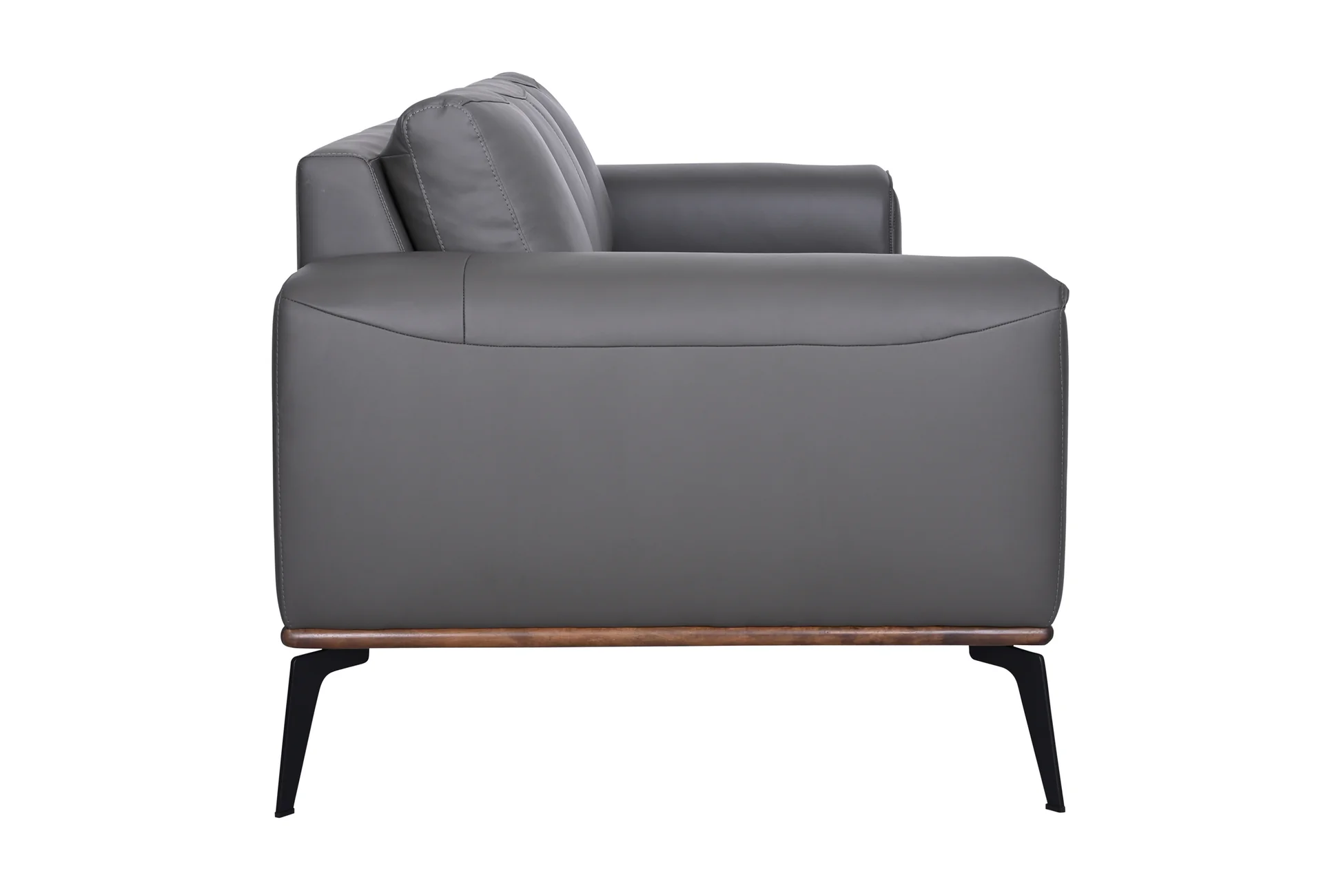 The Pietro Leather Collection is inspired by Italian design. Covered in a charcoal top grain leather with PU match sides, it features elegant square envelope style arm with contemporary metal legs. Best of all it has a deep and comfortable seat.