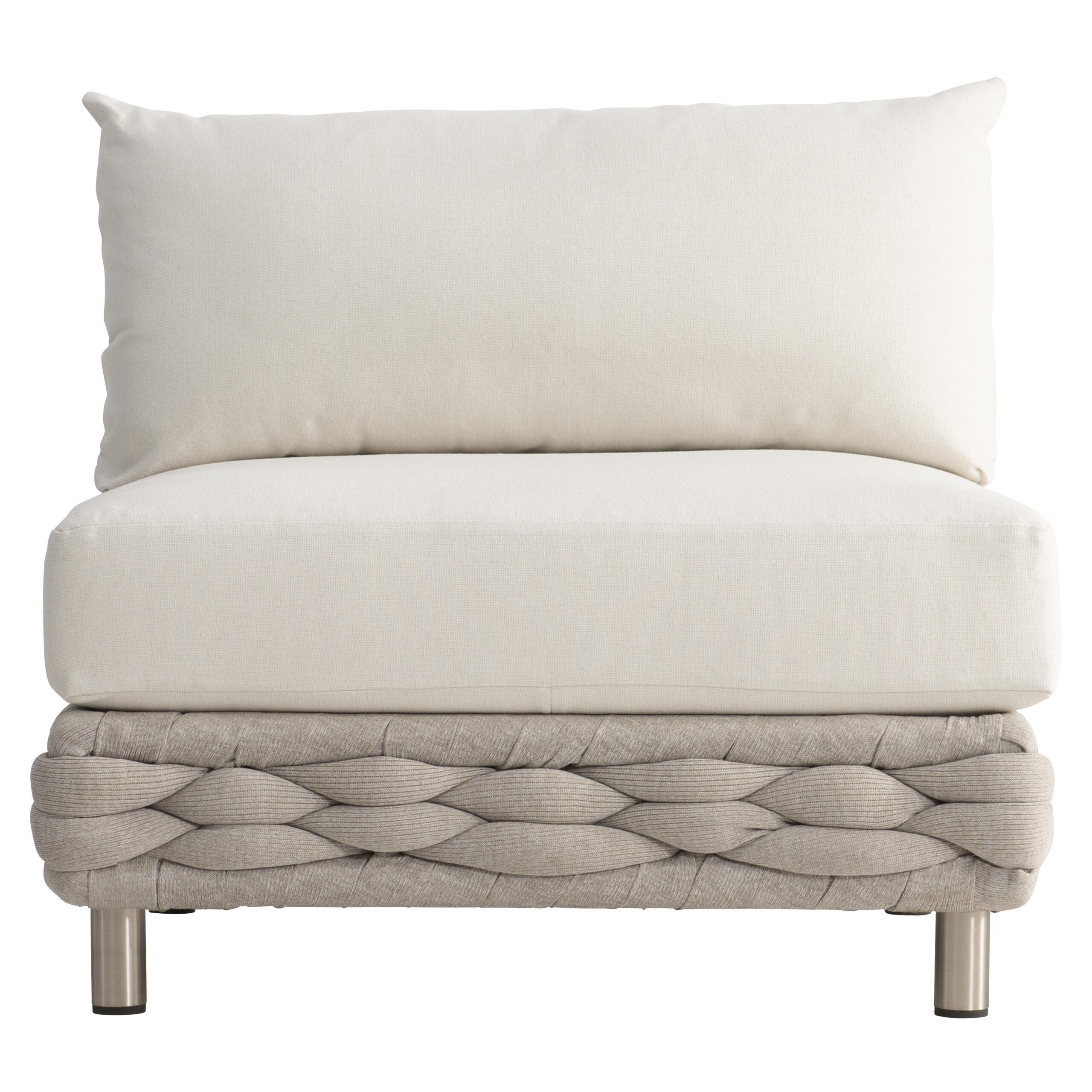Balancing organic appeal with a distinctly modern aesthetic, the Wailea sectional features a unique, overstuffed sock weave in a contemporary Nordic Grey. The soft-knit, all-weather material wraps around an aluminum frame, offering unexpected texture and a relaxed feel and features exposed legs in Oyster finish.